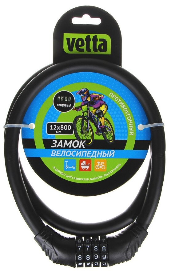 VETTA Замок велосипедный, 12x800мм, с матовым кодовым замком из 4 цифр интересное: