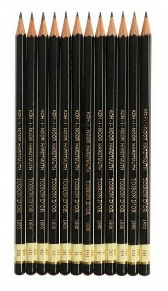 Карандаши чернографитные KOH-I-NOOR Toison D'or 1902 Art 12 шт, 8B-8H (1902012009PL)