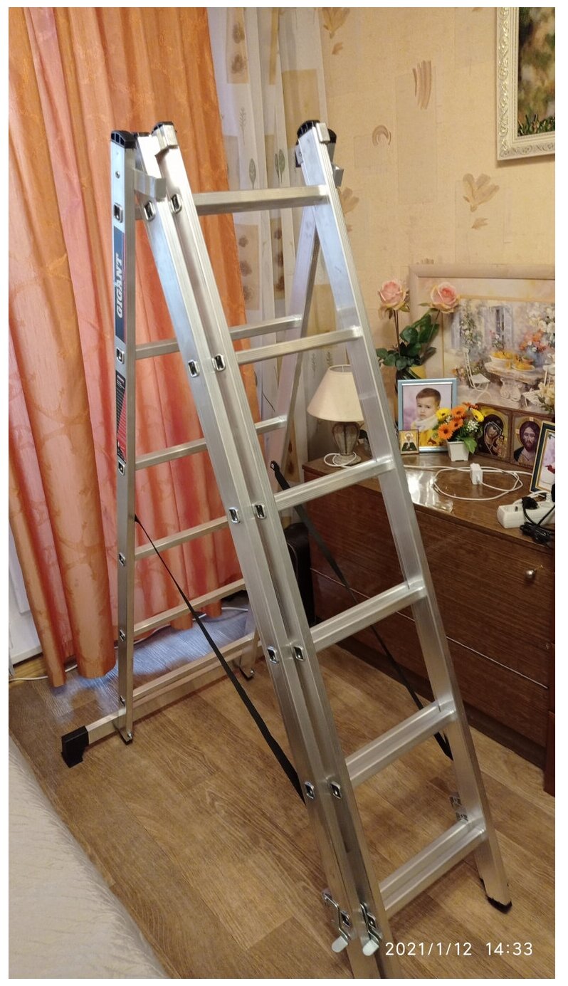 Новая высота Лестница-трансформер 3-х секционная 3×7 ступеней, 3×1,9 м, высота 4,5 м, нагрузка 150 кг, алюминий, новая высота
