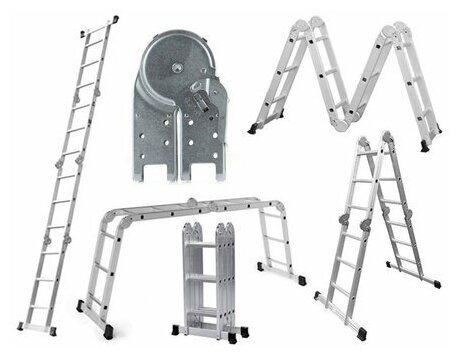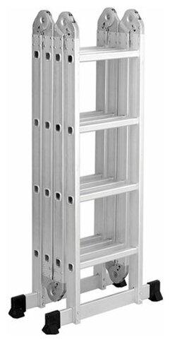 Купить Лестница-трансформер алюминиевая 4×4 ступеней, высота 4,5 м (4 секции по 1,27 м), нагрузка 150 кг, вес 12,9 кг, 511444