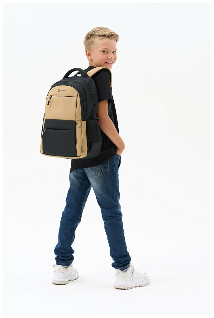 Рюкзак TORBER CLASS X, черно-бежевый, c мешком для сменной обуви, T2602-22-BEI-BLK-M