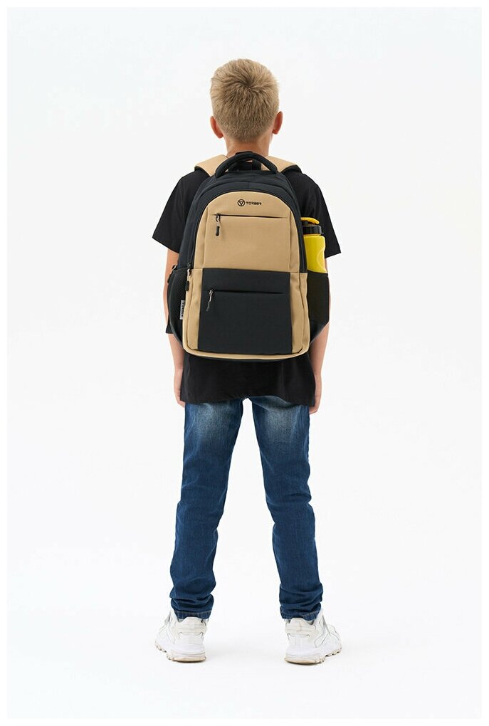 Школьный рюкзак Torber CLASS X 17л черно-бежевый 45x30x18 см + Мешок для сменной обуви в подарок, а:T2602-22-BEI-BLK-M