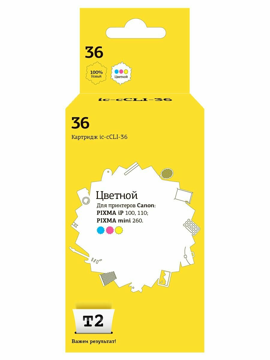 T2 Расходные материалы CLI-36 Картридж IC-CCLI-36 для Canon PIXMA iP100, цветной, с чипом