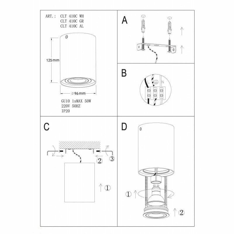 Светильник потолочный Crystal Lux CLT 411, CLT 411C BL-GO, 50W, GU10