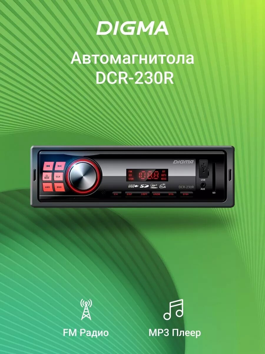Ниже Вы можете прочитать отзывы на Автомагнитола Digma DCR-230R 1DIN 4x45Вт, ознакомится с подробными характеристиками, посмотреть интересные обзоры и фотографии на Автомагнитола Digma DCR-230R 1DIN 4x45Вт.