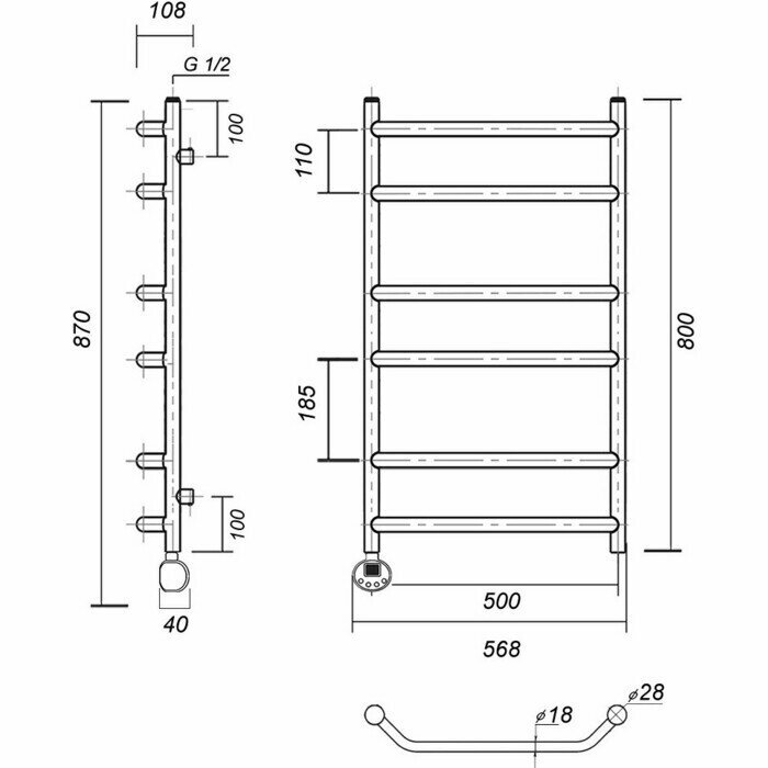 Полотенцесушитель электрический Domoterm Лаура П6 500х800 АБР EL интересное: