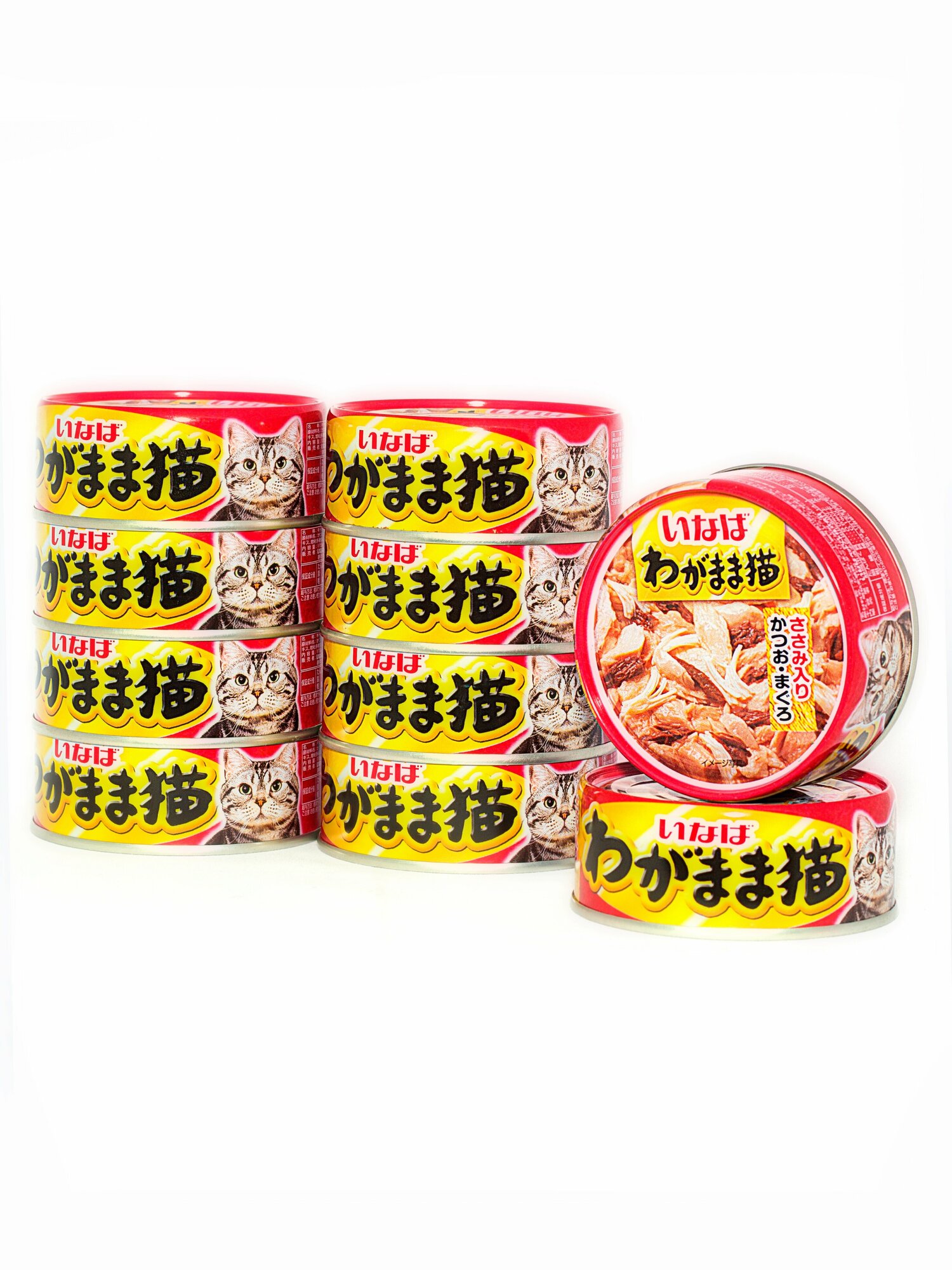 Inaba Wagamama Влажный корм для кошек микс тунцов с куриным филе в желе 115 г