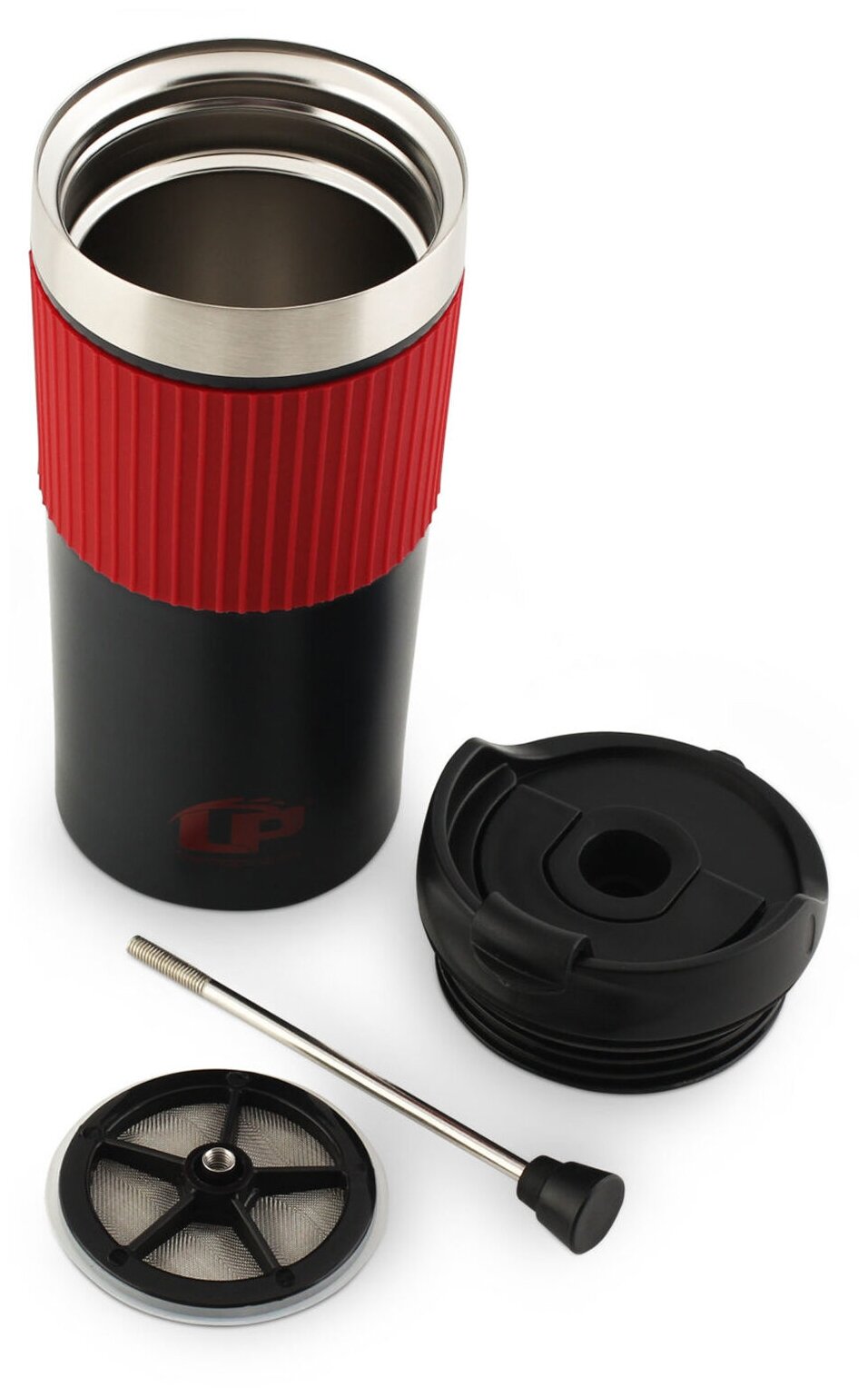 Термокружка для кофе 0,35 л с ситечком френч-пресс стальная LP 350 мл красный