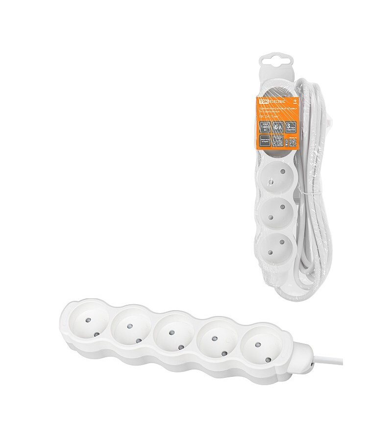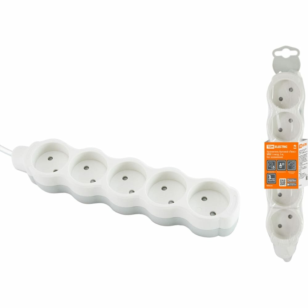 Удлинитель бытовой "Люкс" УЛ5 5 гнезд, 3м, без заземления, с защитными шторками, ПВС 2х0,75 мм2 10А/250В бело-серый, TDM SQ1303-0230 (1 шт.)