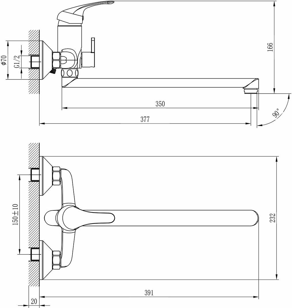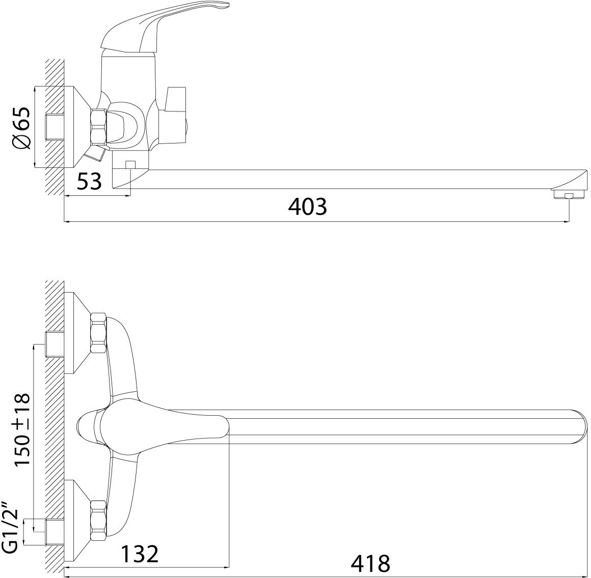 Смеситель однозахватный (35 мм) для ванны, с плоским изливом 350мм, A35-32