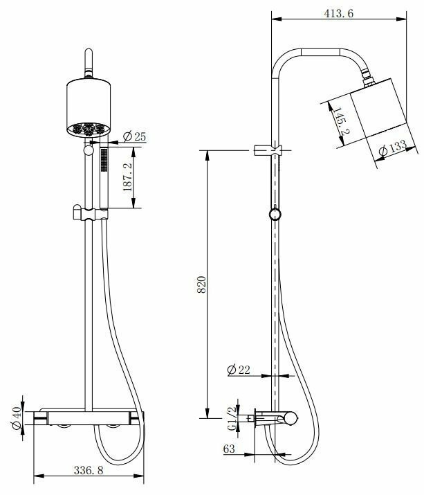 | Особенности | держатель душевой лейки / регулируемый верхний душ |
