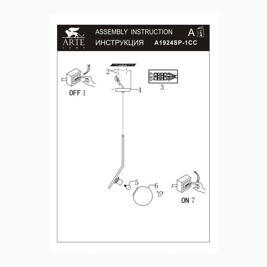 ARTE Lamp #ARTE LAMP A1921SP-1CC светильник подвесной