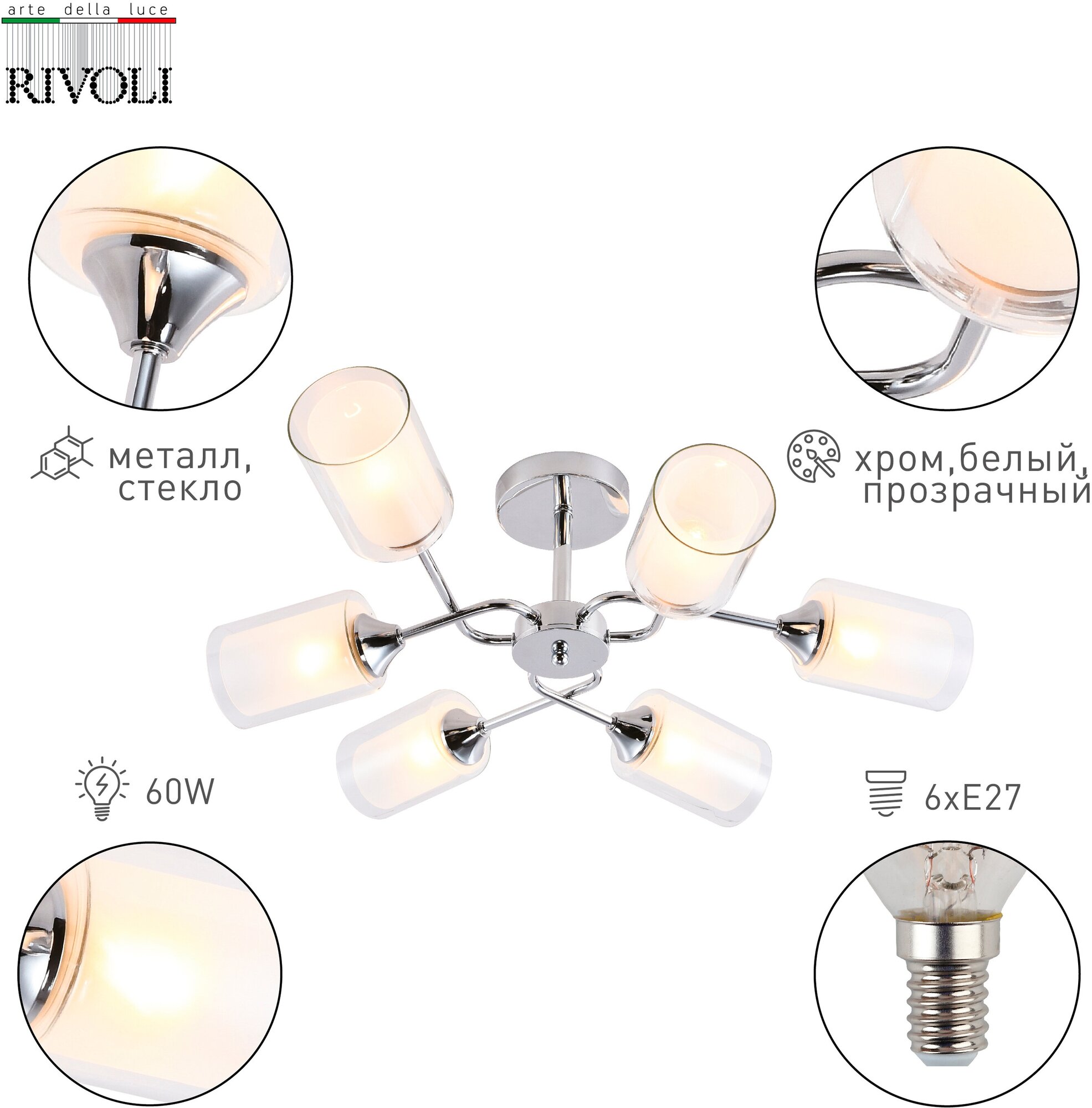 Люстра Rivoli Henrike 9070-306 6 x E27 60 Вт модерн интересное: