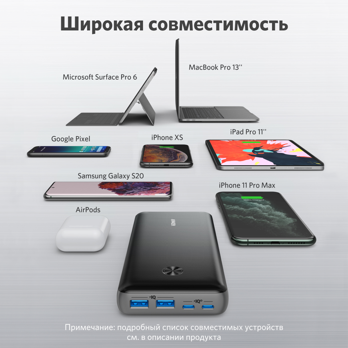 | Плюсы: | Заряжает айпад про, быстро заряжается сам банк до полной зарядки со штекером от anker на 65w |