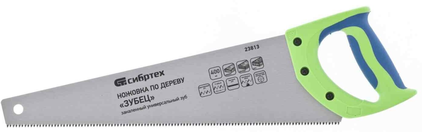 Ножовка по дереву "Зубец", 400 мм, 7-8 TPI, каленый зуб 3D, двухкомпонентная рукоятка Сибртех (23813)