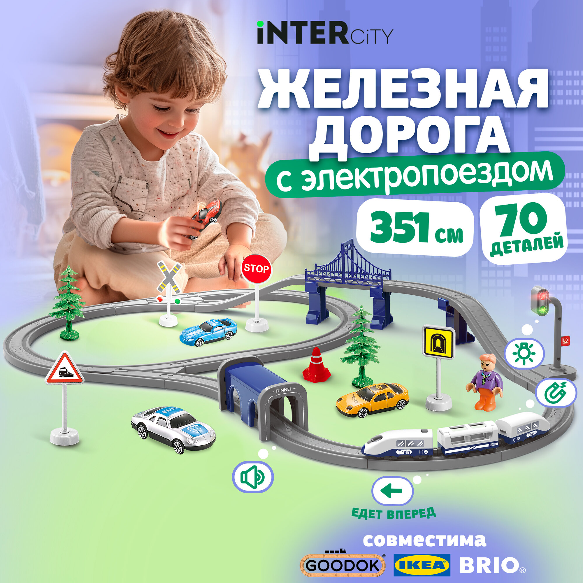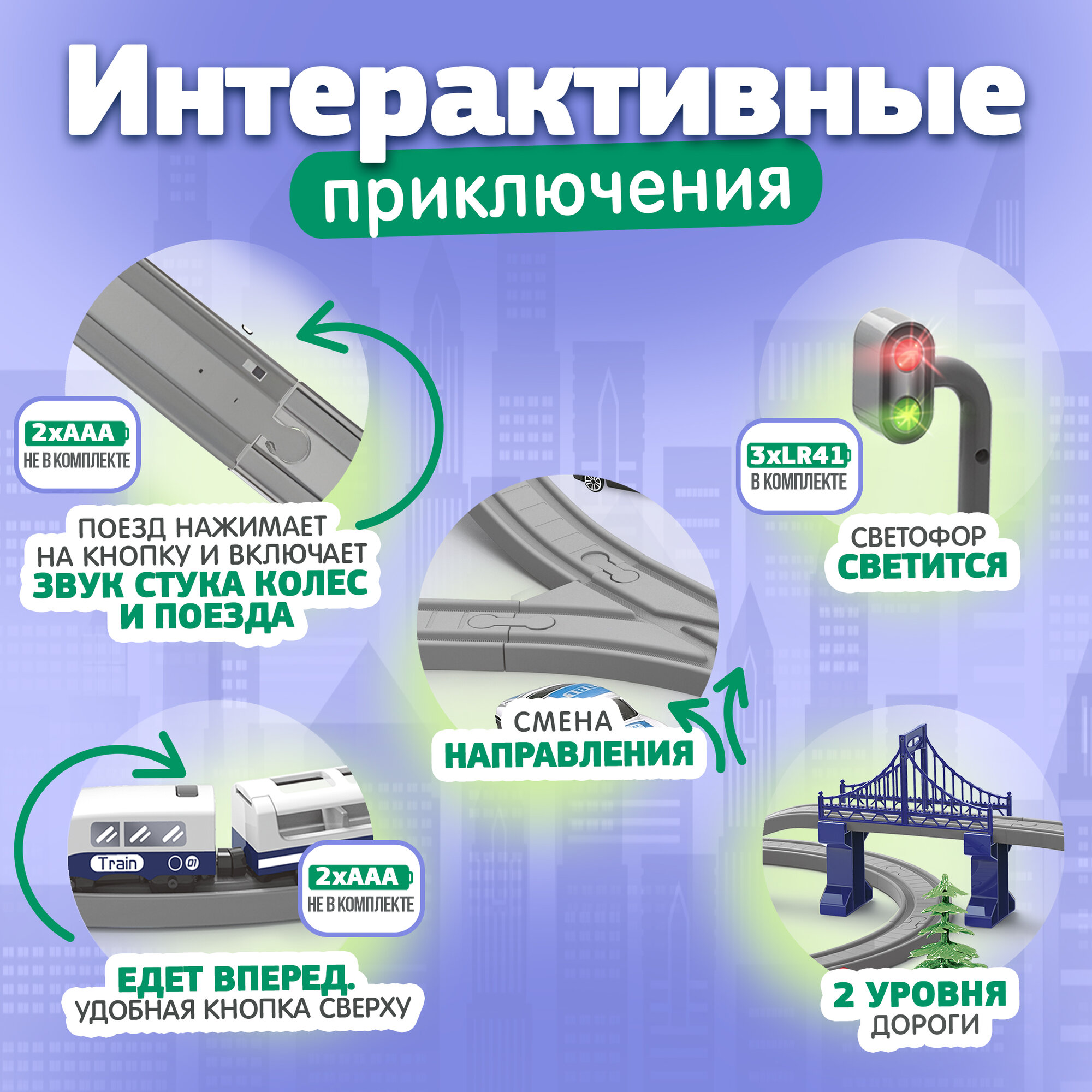 Детская железная дорога с электропоездом 1TOY InterCity, со звуком, паровоз на рельсах, в подарочном наборе, 70 деталей