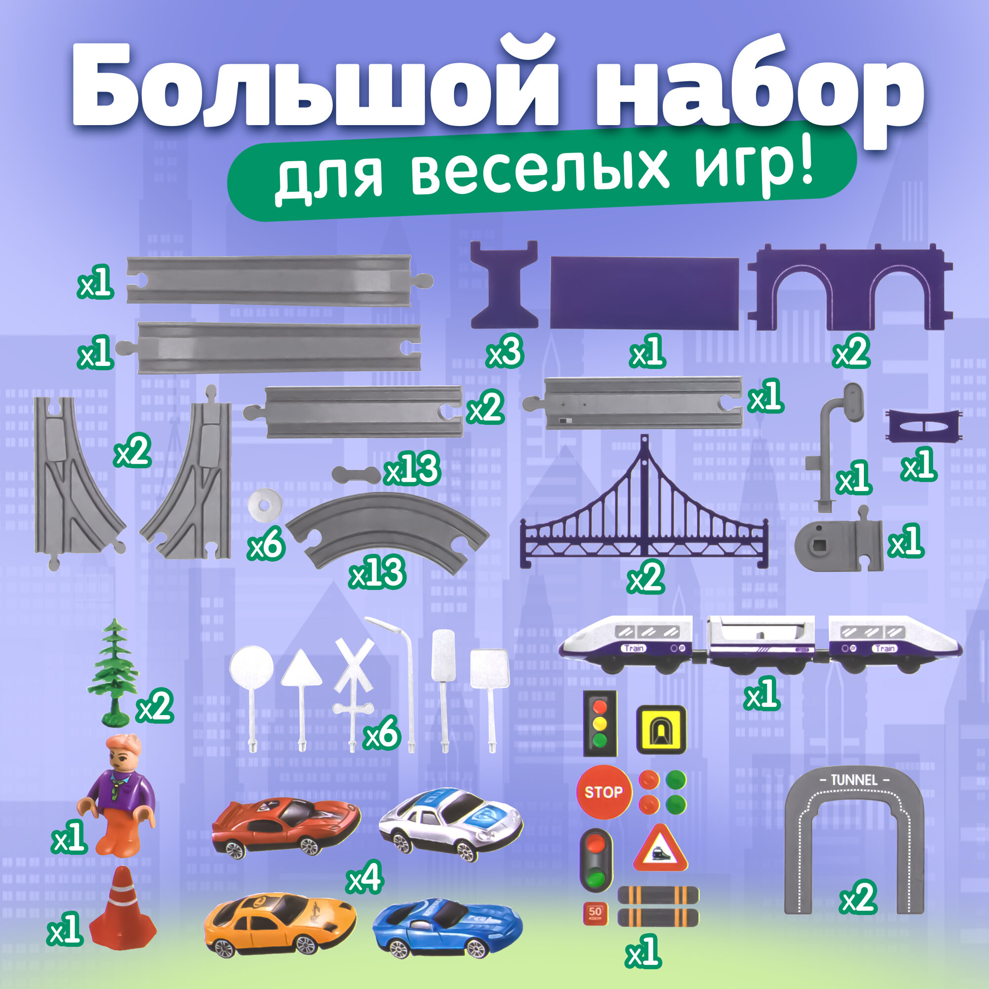 Купить Железная дорога большое путешествие INTER CITY 70 деталей 1TOY Т20835