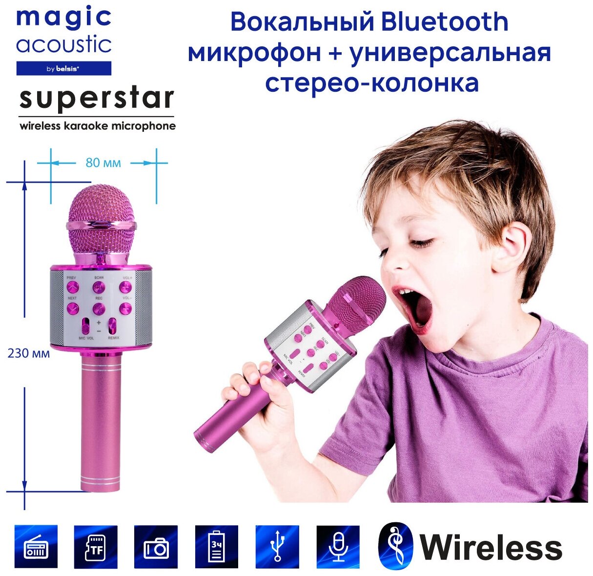Купить Караоке Микрофон Блютуз Magic Acoustic Superstar/Bluetooth микрофон для Девочек Мальчиков Взрослых/Караоке 3-в-1/MA3001PK Superstar, розовый