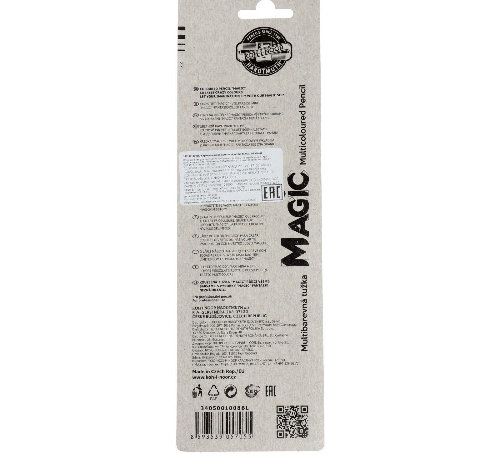 Карандаши цветные Koh-I-Noor Magic 3405 Original 3405001008BL шестигранный дерево Jumbo блистер (1 штука)