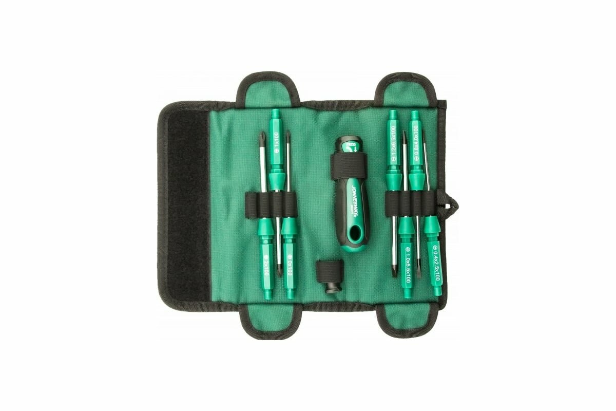 | Дополнительная информация | Отвертка со сменными стрежнями в наборе, 9 предметов Jonnesway |