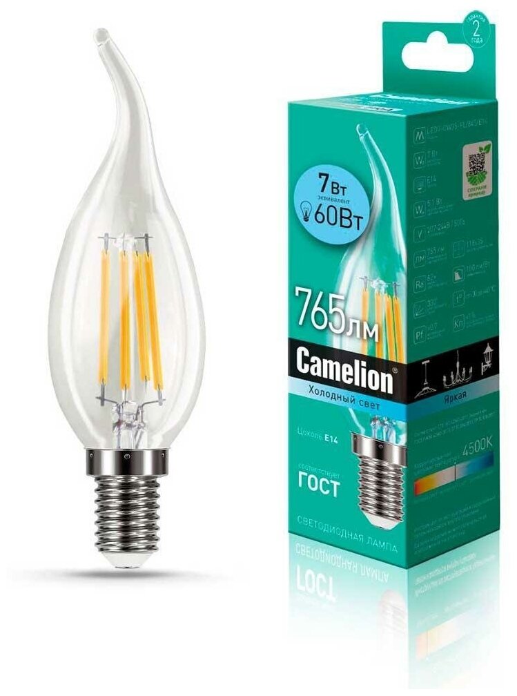 Camelion (Эл.лампа светодиодная 7Вт 220В) CAMELION LED7-CW35-FL/845/E14 (1 шт.) интересное: