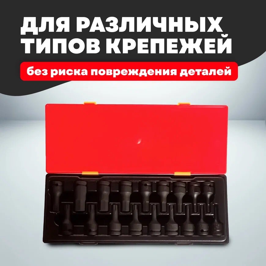Набор головок ударных Hex Torx 1/2" 18 пр. H5-H19, T20-T60 L=60 мм JTC-K4181 JTC JTC-K4181 | цена за 1 шт