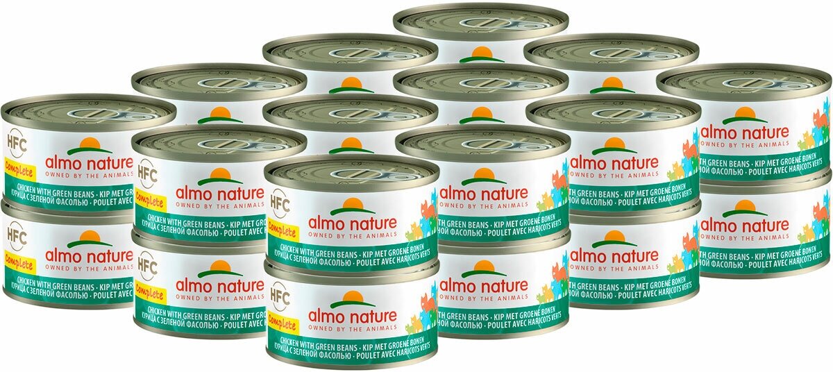 Almo Nature Набор 24 штуки по 70 г Полнорационные консервы для кошек с курицей и зелёной фасолью (HFC - Complete - Chicken with Green Beans) 1.68кг
