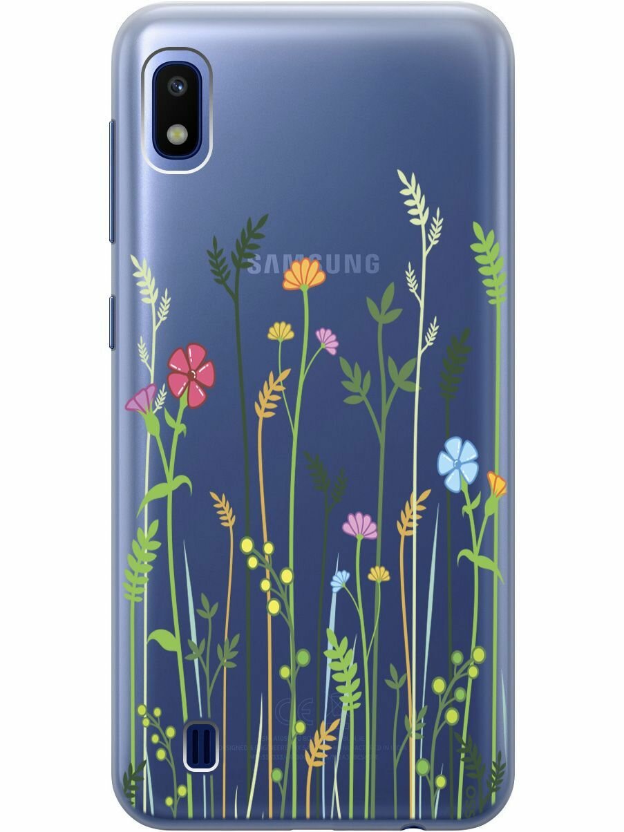 Купить Ультратонкий силиконовый чехол-накладка Transparent для Samsung Galaxy A10 с 3D принтом "Flowers & Fern"