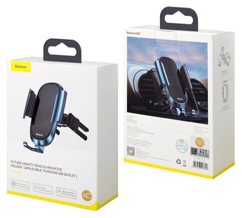 | Дополнительная информация | Автомобильный держатель Baseus Future Gravity стильно и элегантно выглядит, надежно удерживает смартфон и не мешает работе с ним. Аксессуар отличается инновационной конструкцией фиксирующего крепления, специально разработанной для установки в круглый дефлектор автомобиля. Благодаря чему он прочно там держится. Гравитационный механизм позволяет вставлять телефон в держатель и вынимать из него одной рукой. |