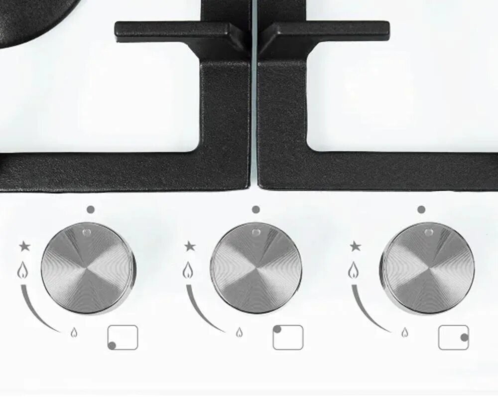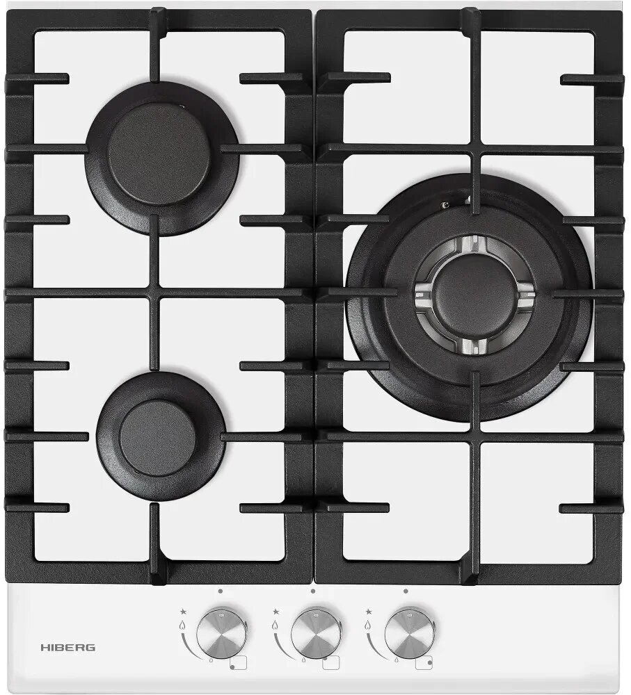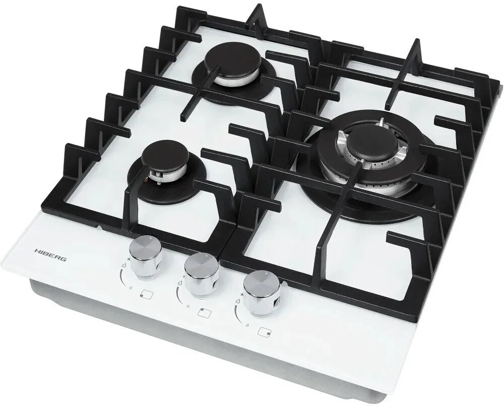 Газовая варочная поверхность HIBERG VM 4534 W, 3 конфорки, электророзжиг, газ-контроль, белый
