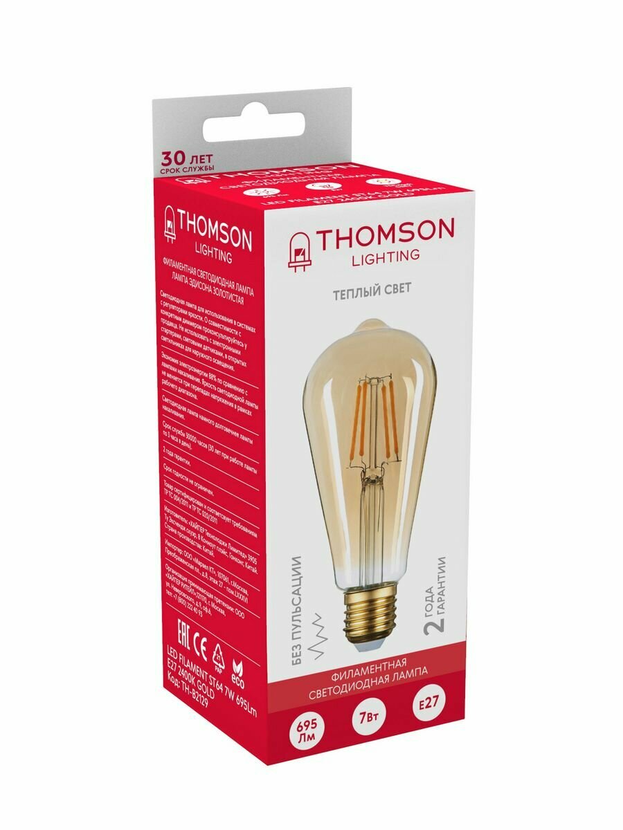 Лампочка Thomson филаментная TH-B2341 7 Вт, E27, эдиссон, 6500K, ST64, холодный белый свет