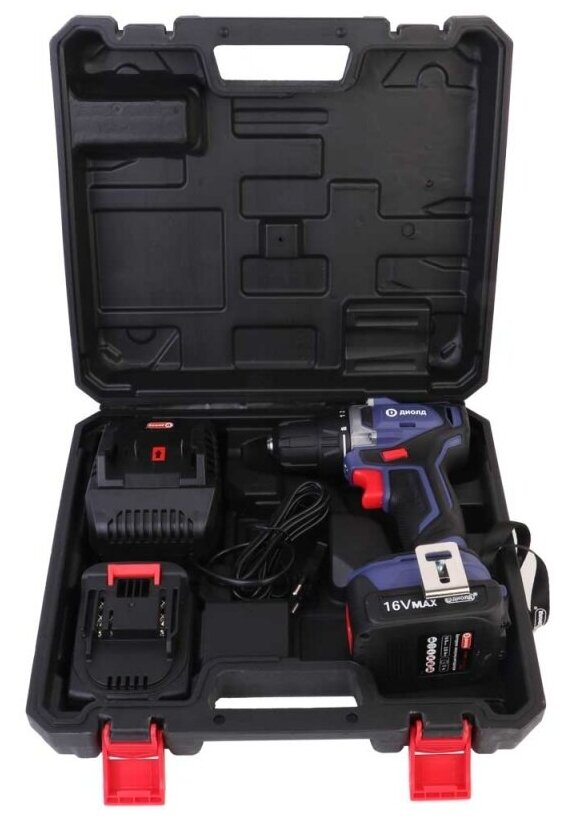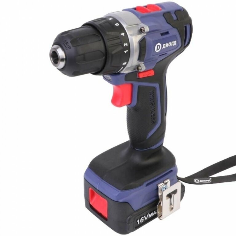 Дрель-шуруповерт аккумуляторная диолд ДЭА-16Л-08, кейс, бесщеточный двигатель, 2 аккум., 2 скорости, плавное изменение оборотов, реверс, Li-ion, 16В, 0-1400 об/мин