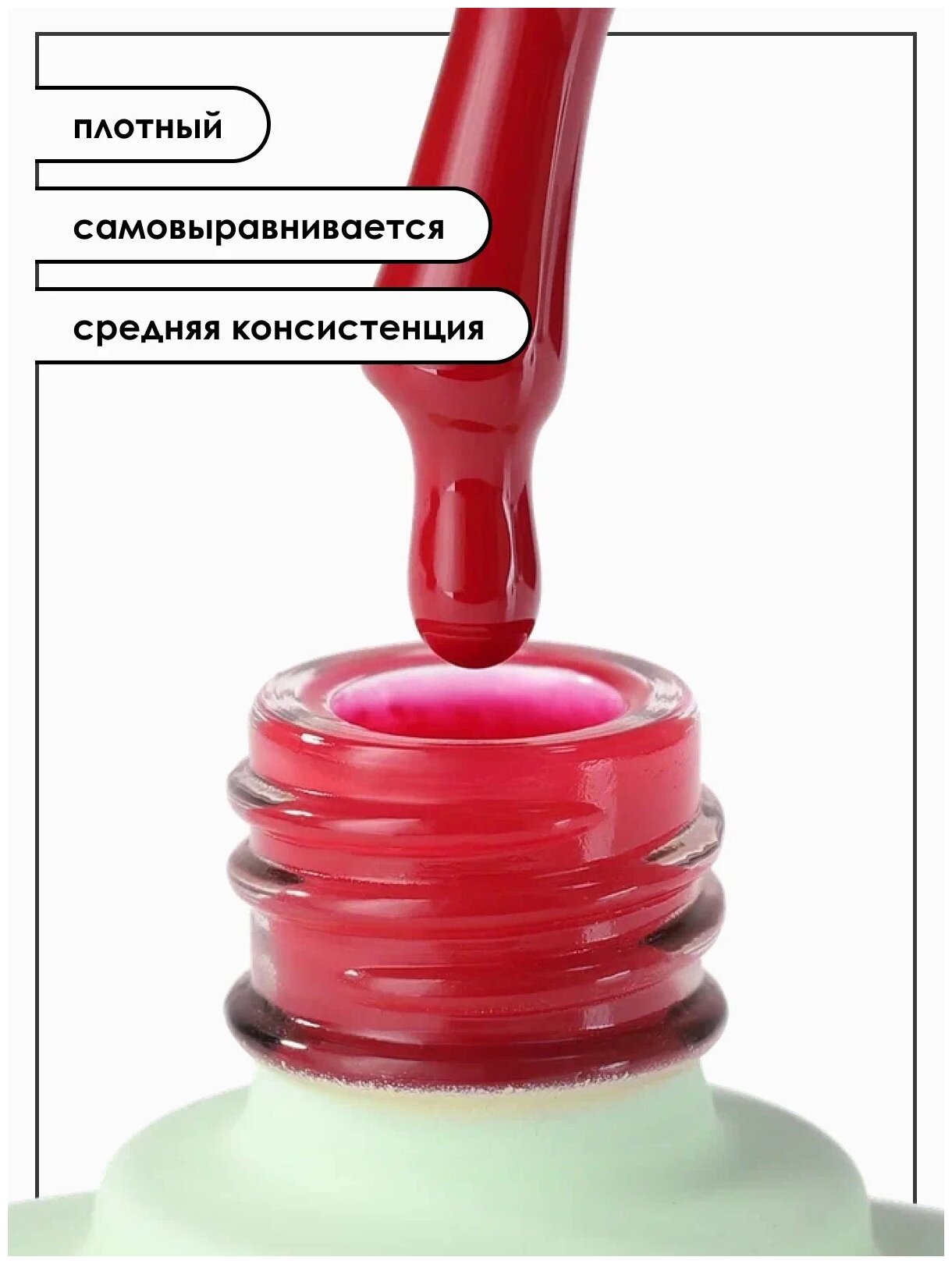 | Плюсы: | Достаточно густой, не затекает под кутикулу, не полосит, ложится ровно с первого слоя |