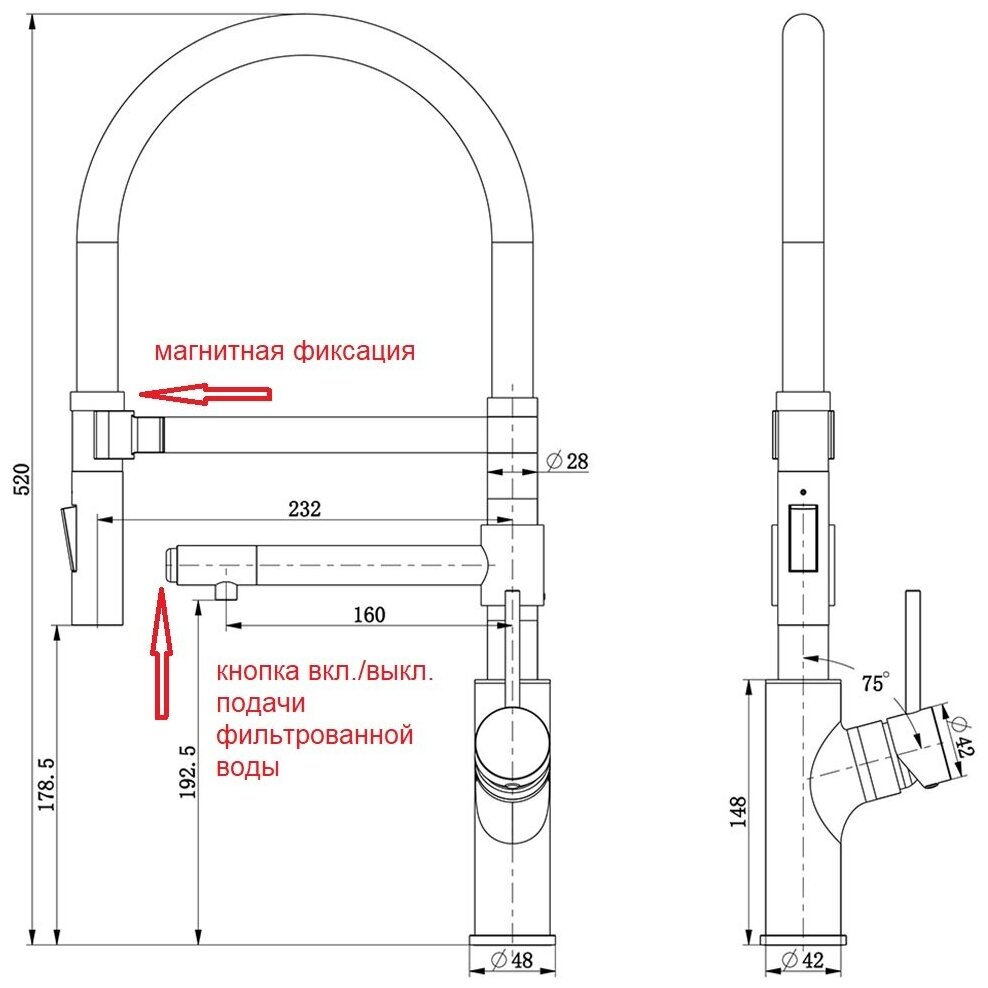 | Тип излива | гибкий / для фильтрованной воды / поворотный |