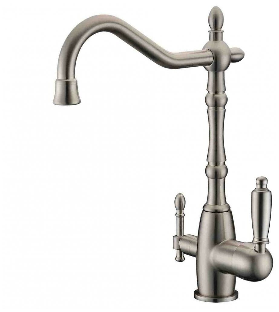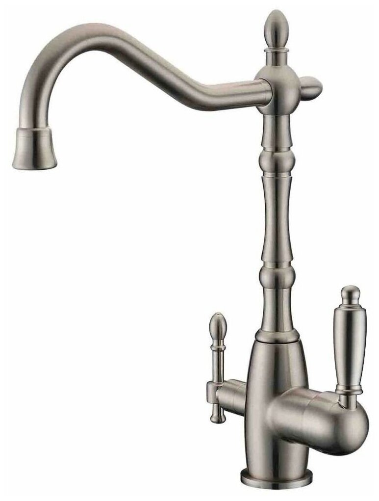 Смеситель под фильтр ZorG ZR 312 YF-33-NICKEL ретро, сатин никель матовый, поворотный, высокий, ручки металл, для кухни