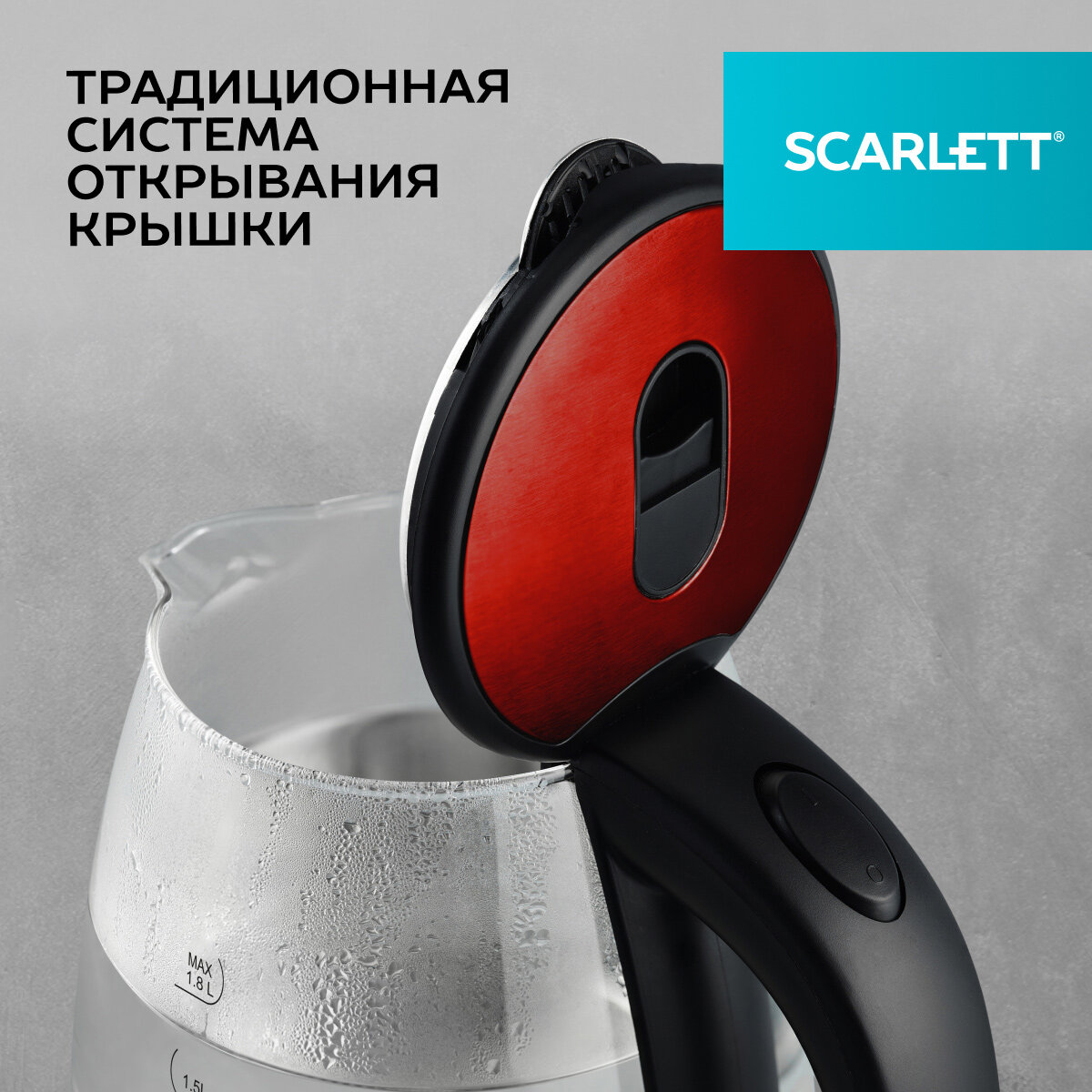 Чайник Scarlett SC-EK27G102,1800 Вт, 1.8 л, корпус-стекло, краcный