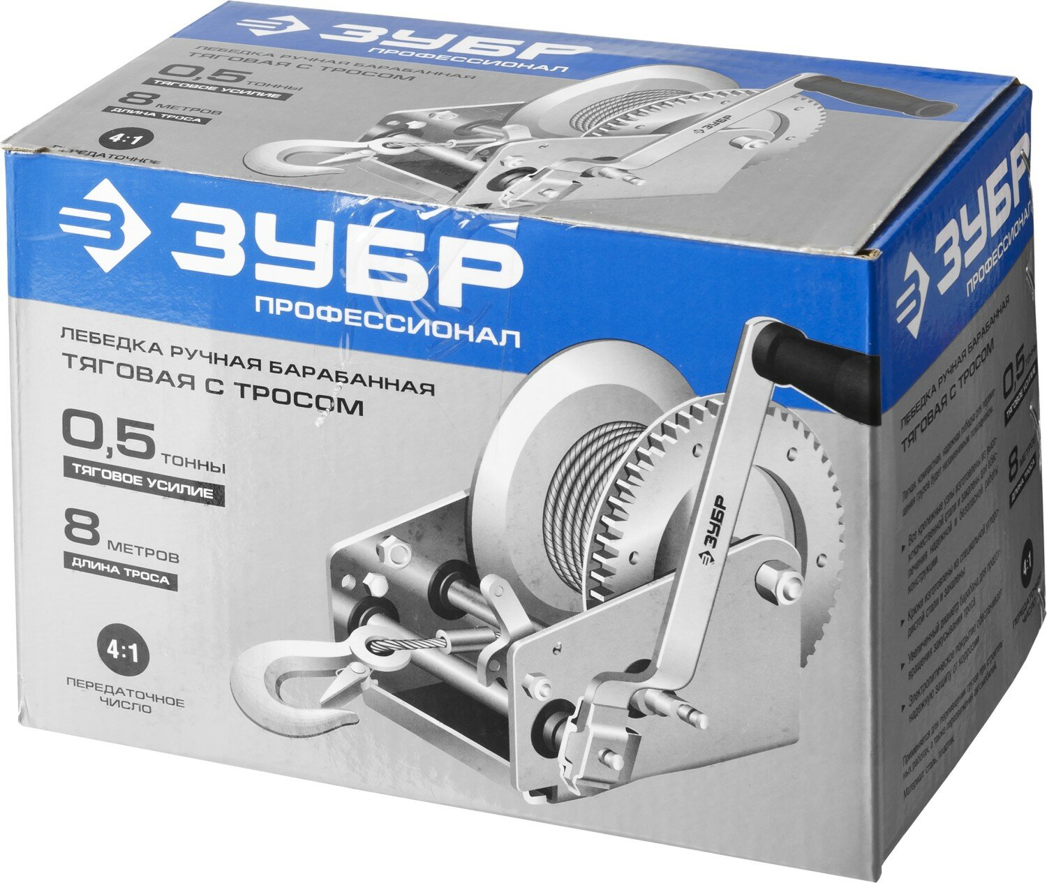 Лебедка ручная барабанная ЗУБР "Профессионал", тяговая, тросовая, 0,5т, 8м интересное: