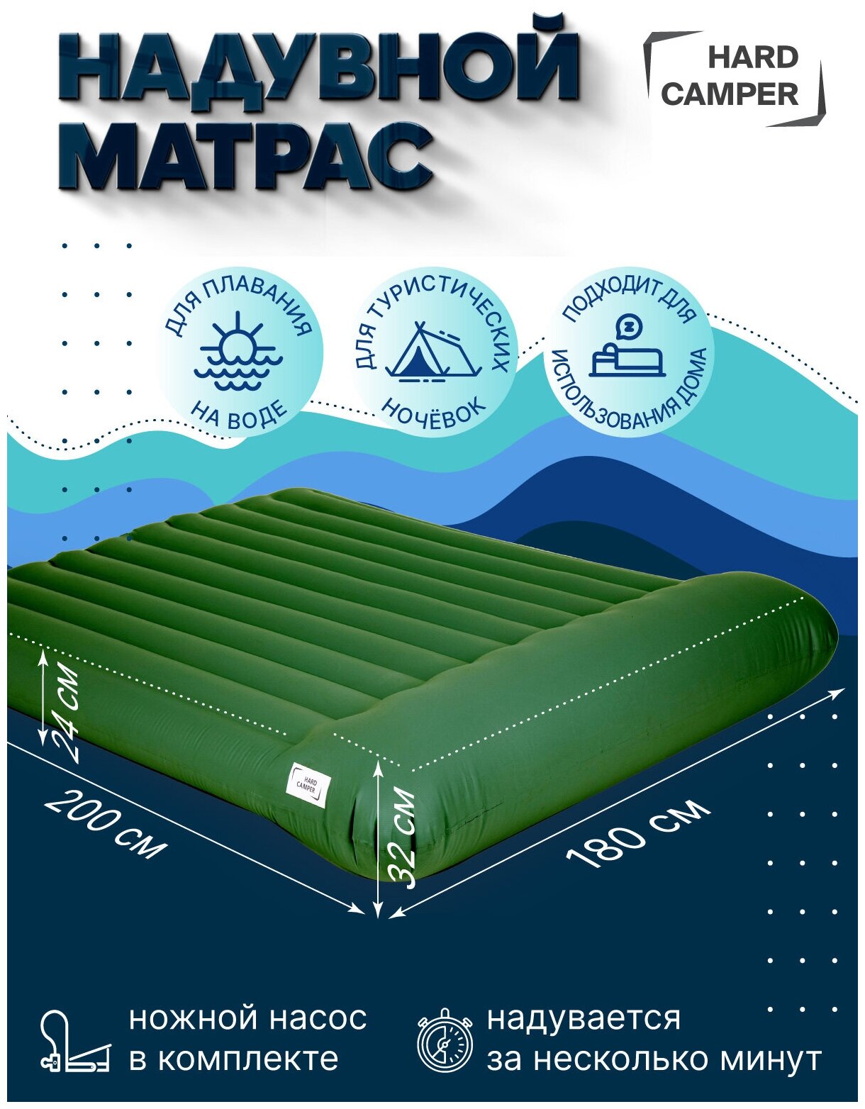 Матрас надувной сверхпрочный Hard Camper 200х140х24 см (зеленый)