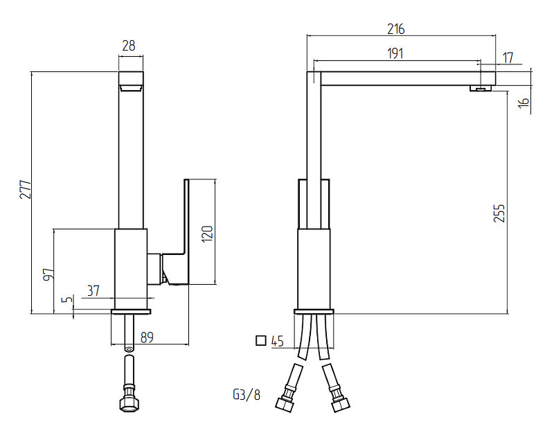 Migliore CUCINA KVANT смеситель для кухни моноком., высокий квадратный прямой излив, ручка сбоку, хром 26097