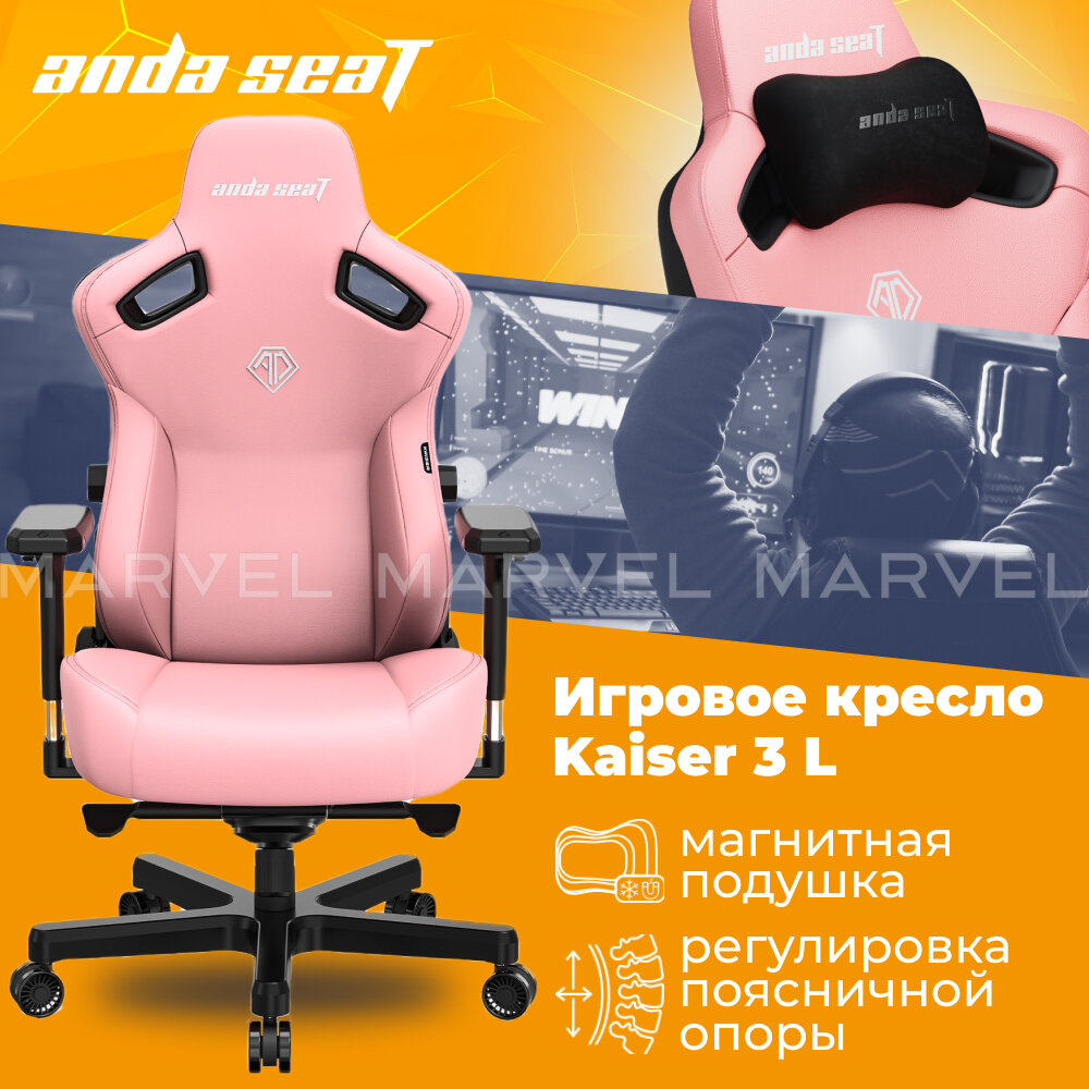 Игровое кресло AndaSeat Phantom 3, размер L (90 кг), кожа, розовый