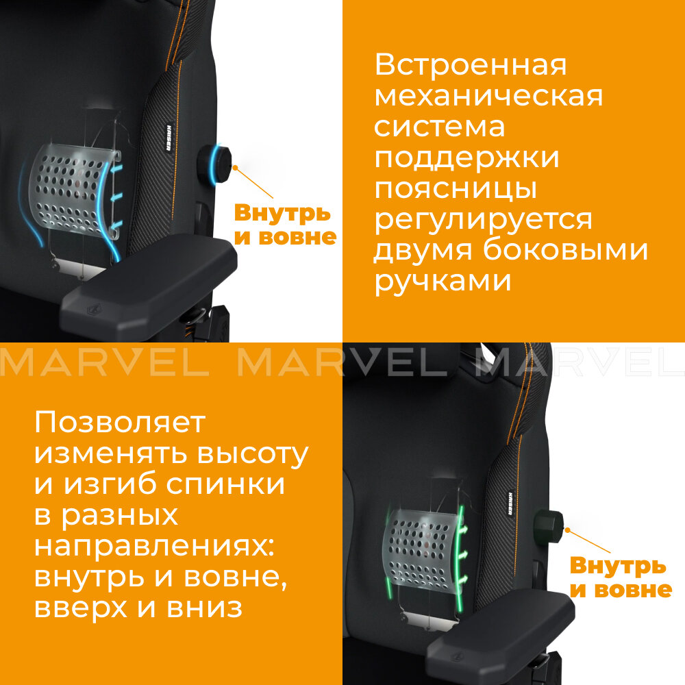 | Минусы: | Механизм качания начального уровня. В целом это не напрягает так как не люфтов ни скрипов не замечено. Подушка под поясницу без направляющих и каких-либо креплений. Подушка под шею в целом рассчитана на людей выше 180 см. Подлокотники регулируются только по высоте в трех положениях. |
