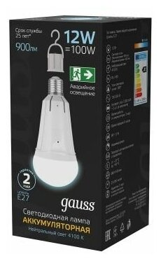 Gauss Лампа A80 12W 900lm 4100K Е27 авар. с Li-Ion аккум. LED 1/5/50 102002212