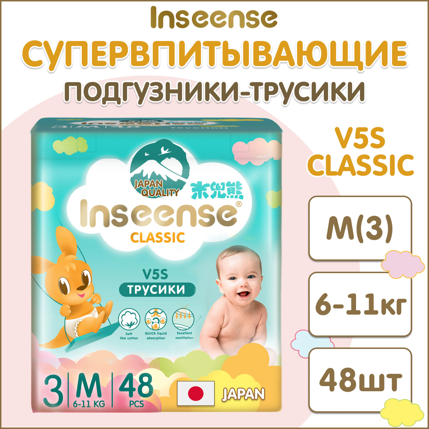 Подгузники-трусики Inseense Classic, размер M, 6-11 кг, 48 шт