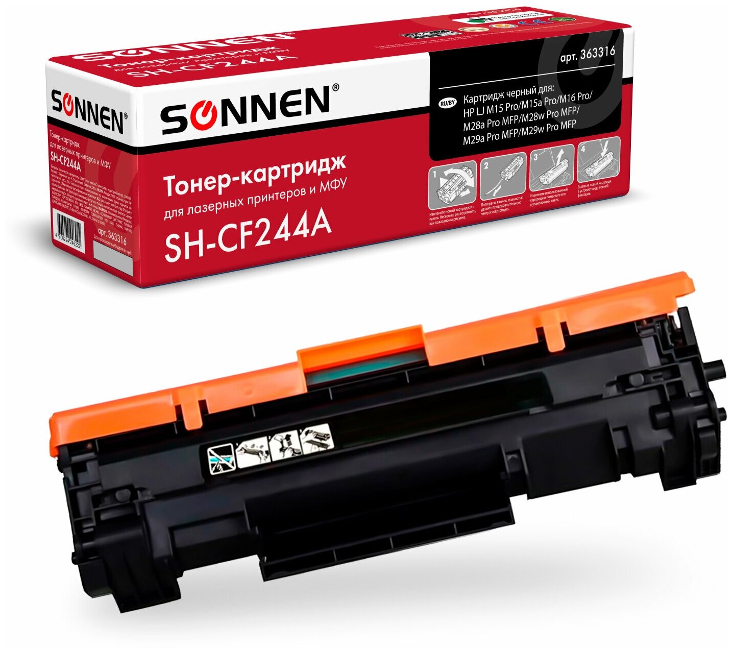 Картридж лазерный SONNEN (SH-CF244A) для HP LaserJet Pro M15/16; MFP M28/29, ресурс 1000 страниц, 363316 В комплекте: 1шт.