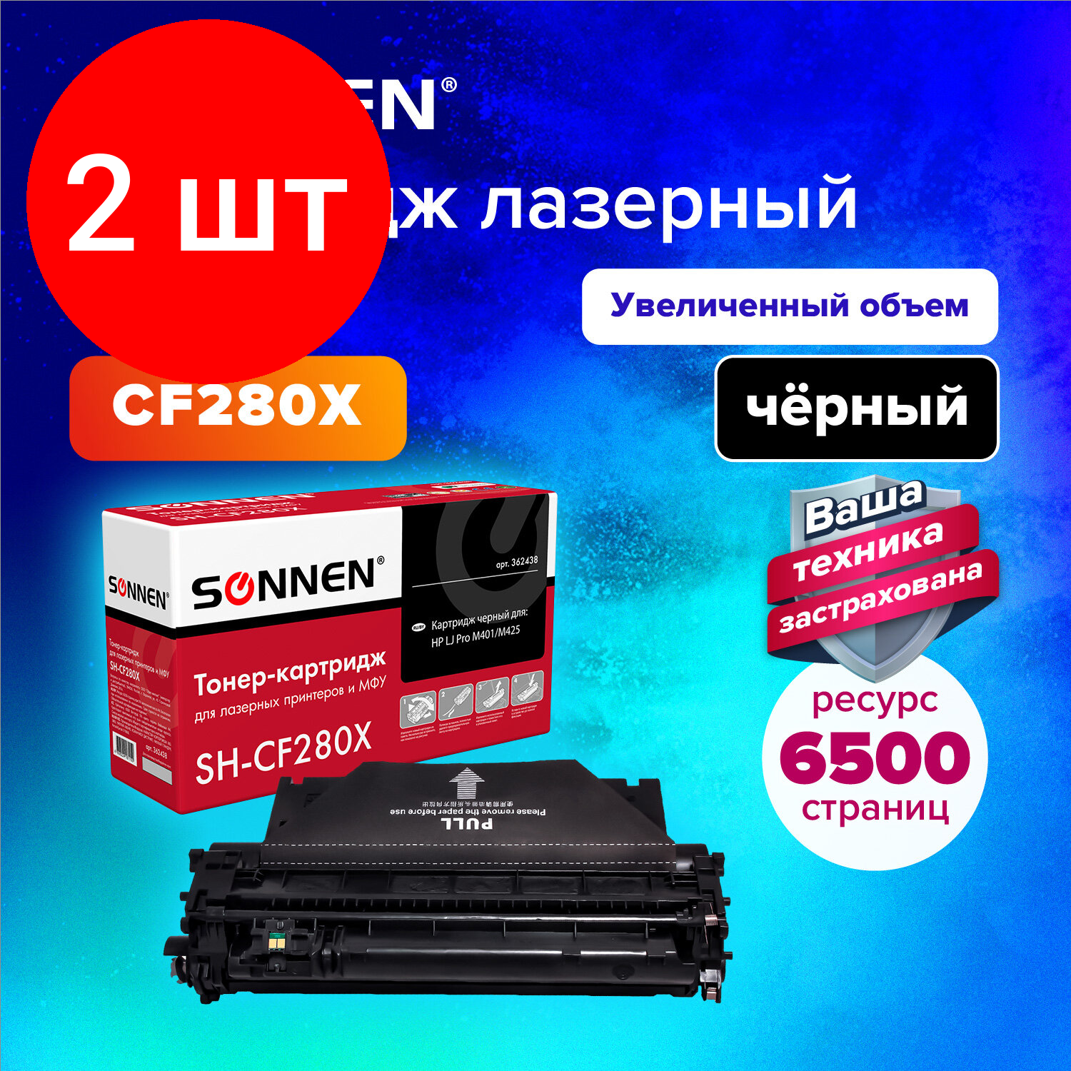 Картридж лазерный SONNEN (SH-CF280X) для HP LaserJet Pro M401/M425, высшее качество, ресурс 6500 стр., 362438 В комплекте: 1шт.