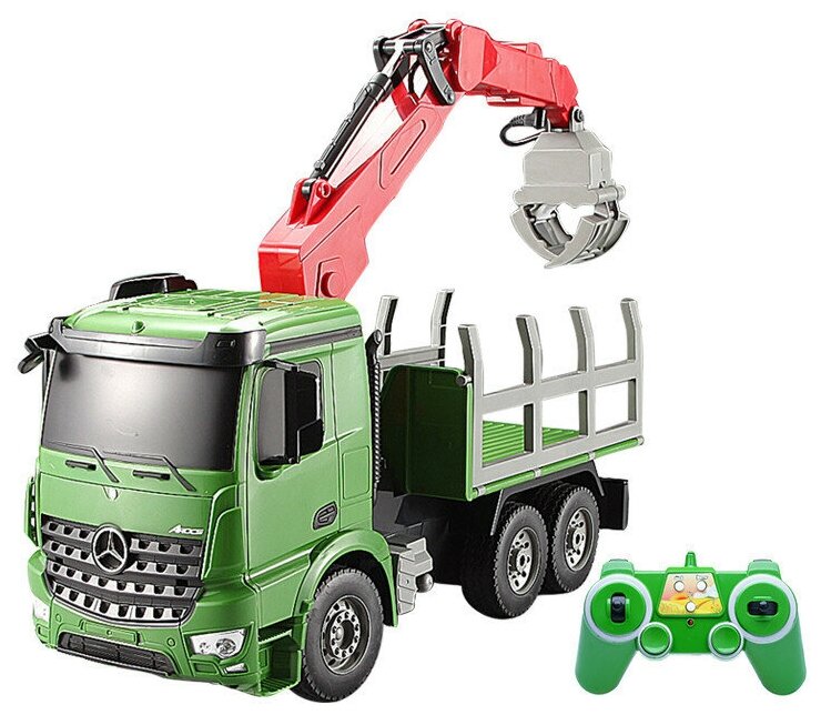 Лесовоз на пульте управления многофункциональный Mercedes-Benz Arocs (E352-003), 1:20, 38 см, зеленый/красный/серый