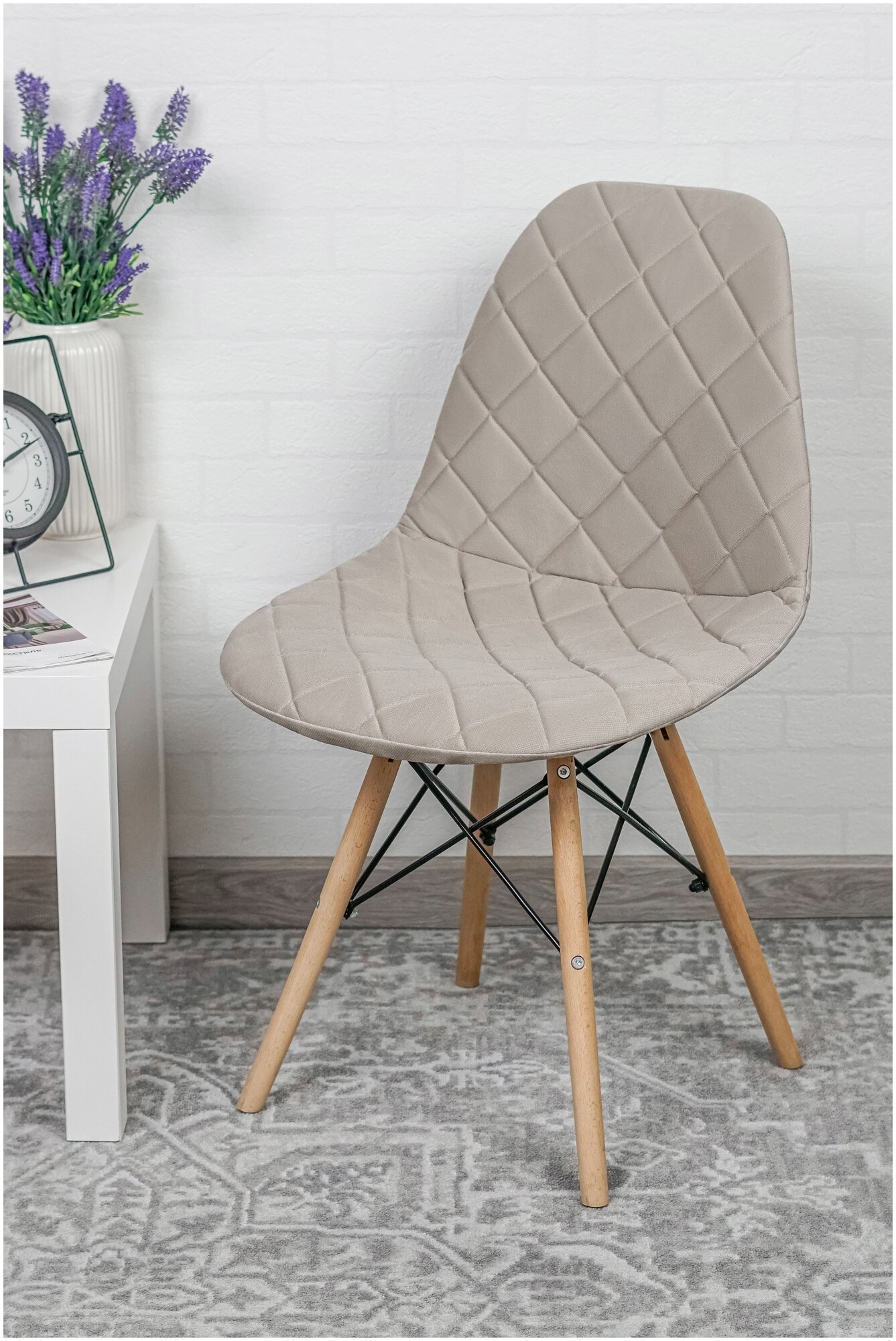 Купить Чехол на стул со спинкой Eames DSW из микровелюра, 40x46 см, бежевый