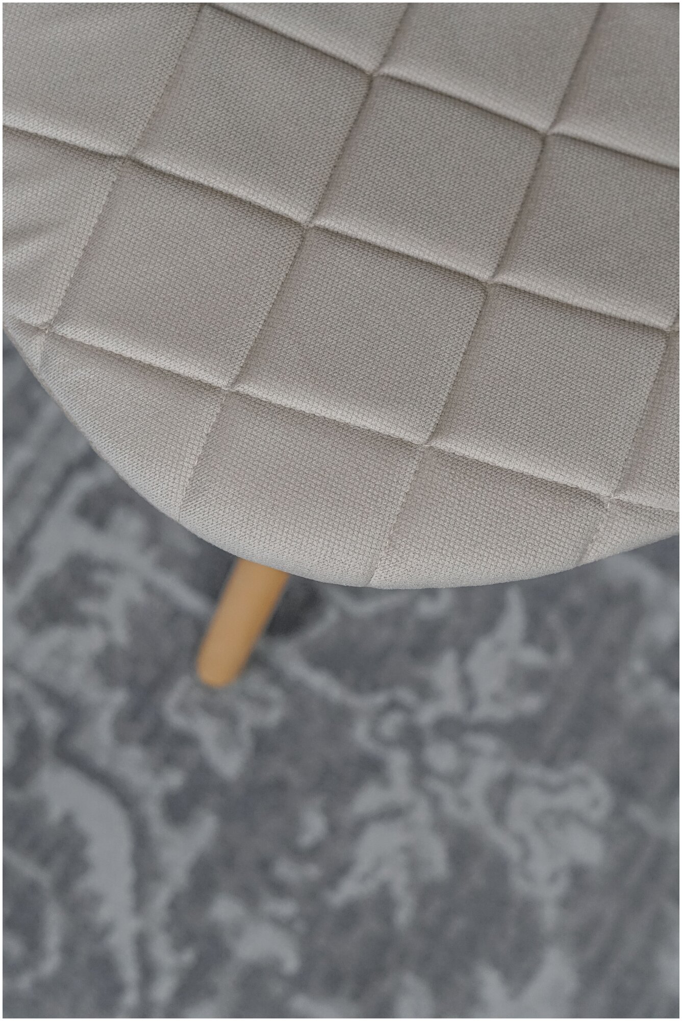 Чехол съёмный на Пуфик Круглый 39см, вельвет верх- бежево-серый, низ- белый (сливочный).