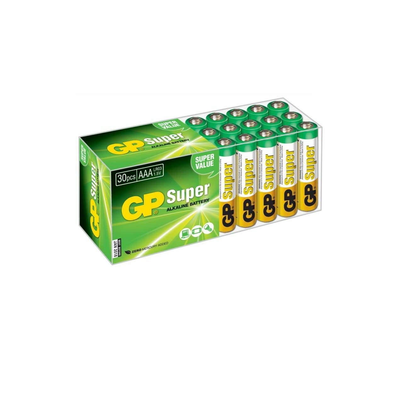 Купить Батарейкa щелочная (алкалиновая) тип ААА/LR03, GP Super (30шт)