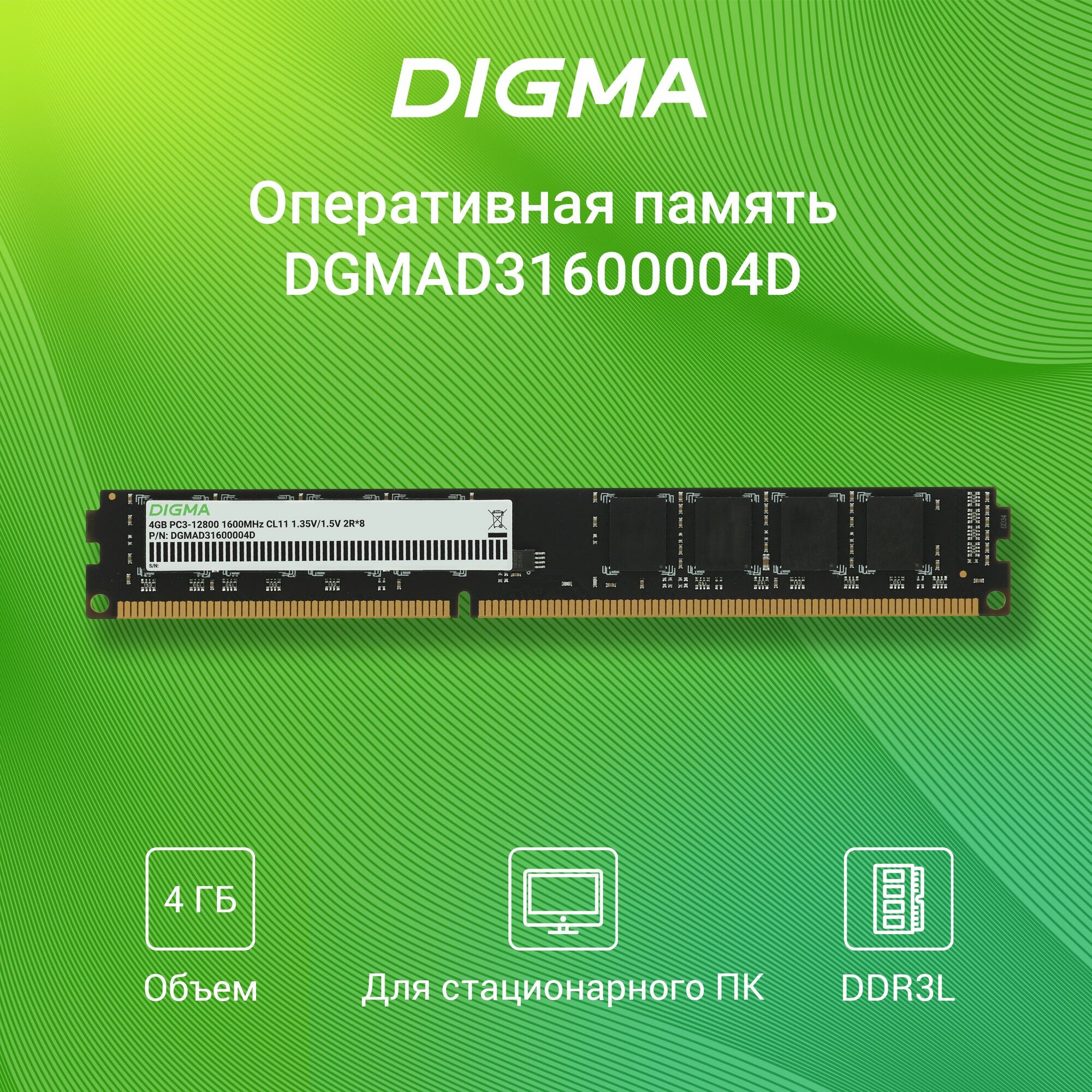 Оперативная память Digma DGMAD31600004D DDR3L - 1x 4ГБ 1600МГц, DIMM, Ret